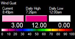 | Peak Wind Gust | 12mph at 7:26pm | ||